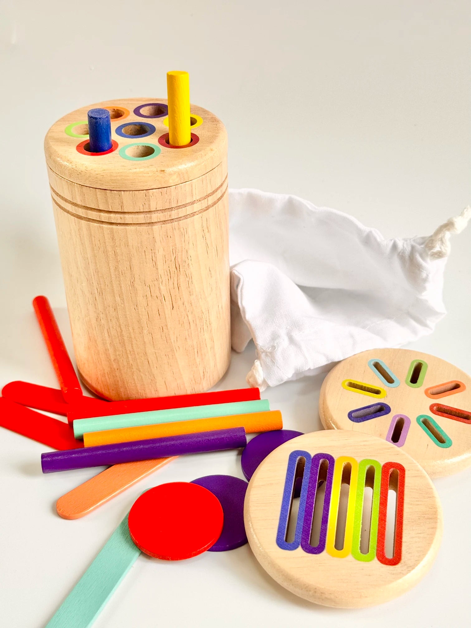 Cotton Drawstring Bag – Everything packs neatly into a high-quality cotton drawstring bag, making it perfect for travel, playdates, or tidy storage at home.